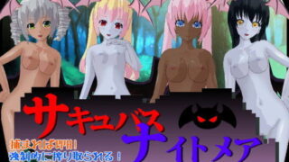 ★概要 アニメーションRPG『サキュバスナイトメア』がパワーアップして帰ってきました! 本作は、夢の世界で迫りくるサキュバスから逃走し、現実世界を目指すゲームです。 サキュバスに捕まると、快楽攻撃を受け搾り取られてしまいます。 ★パワーアップしたところ 今作では、前作をプレイして下さった方々のご要望をたくさん反映しました! 反映した点は以下の通り…