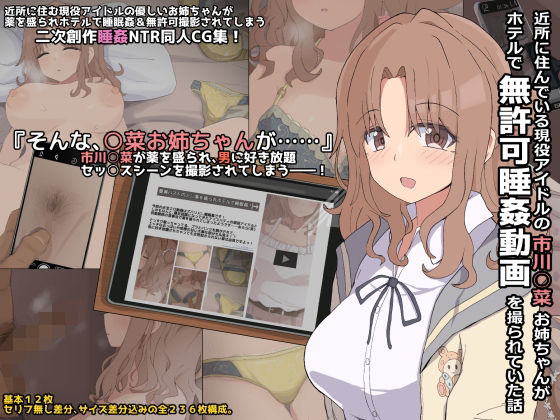 近所に住む現役アイドルの優しいお姉ちゃんが ホテルで睡眠姦されてしまう2次創作NTR同人CG集。 シャ○マスの2次創作作品となります。 ホテルで無許可睡姦されるアイドル 市川○菜 の動画を、 ○菜の家の近所に住む年下の男子生徒が見つけてしまう。 男子生徒視点のストーリーとなります。 ○菜お姉ちゃんは睡眠薬を盛られ、ぐっすり寝ている間に下着姿にされ…