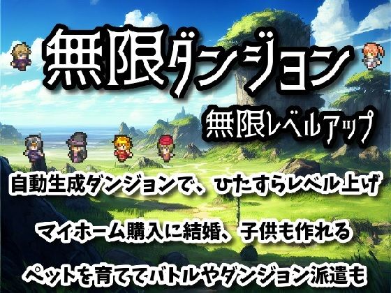 『無限ダンジョン無限レベルアップ』は、ひたすらレベルを上げるゲームです。 好みのキャラをパーティに入れて、思う存分、強化してあげてください。 レベル上げに疲れたら、ペット育成やマイホーム購入、結婚などのスローライフも可能です。 ダンジョンは自動生成され、進むごとに敵の強さや貰える経験値が上がって行きます。 比較的、単純構造の為サクサク進めて、レベルもサク…
