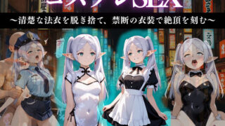 真面目で冷静沈着なフェルンが、禁断のコスプレに挑戦。 メイド、チャイナ、バニー、ポリス…次々と衣装を脱ぎ捨て、 清楚なイメージを覆す淫らな姿へと変わっていく。 恥じらいと快感の間で揺れる魔法使いが、ついに理性を捨てて―― 「もう、止められない…(はーと)」 ※この作品はAIを利用して作成したものです。 ※Stable Diffusionを使用して生成して…