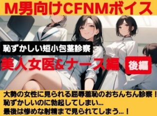 CFNM女学園 【無料アリ】クールな美人女医が短小包茎のお子様チンポを優しく言葉責め…!大勢の女性が見ているのに惨めに射精…! M男向けCFNMボイス作品 恥ずかしい短小包茎診察 美人女医&ナース編後編【d_618327】【CFNM女学園】感想・レビュー